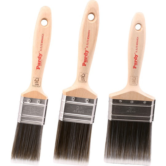 The esteemed manufacturer presents an excellent offer on specific boxed sets featuring their highly acclaimed Monarch Elite brush range. The thick stock of these brushes makes them suitable for both water and oil-based paints. Crafted by UK professionals for their counterparts in the UK. Handmade in the USA. Size: 1 x 1½", 1 x 2" & 1 x 3". Pack Size: 3-piece set.
