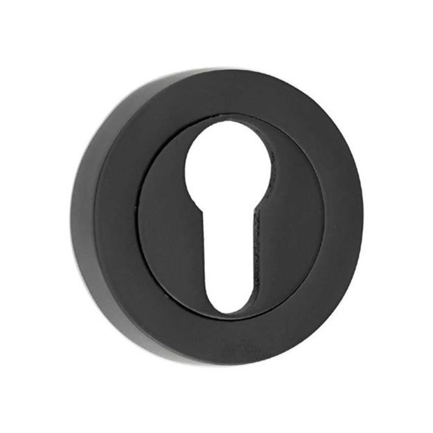 The Nero Matt Black Euro Cylinder Escutcheon, identified as JMB18, is a push-on type escutcheon designed for use with Euro Cylinders. Notably, it holds a fire door rating of 30 minutes, making it suitable for fire-resistant applications.