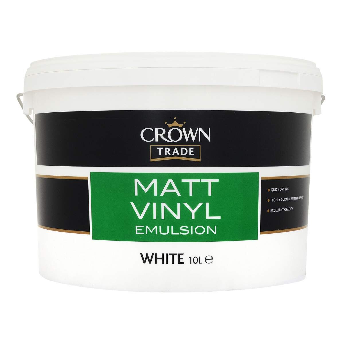 Crown Trade Matt Emulsion is a premium quality vinyl matt emulsion for interior walls and ceilings. it provides a non reflective flat matt finish and provides superb opacity.