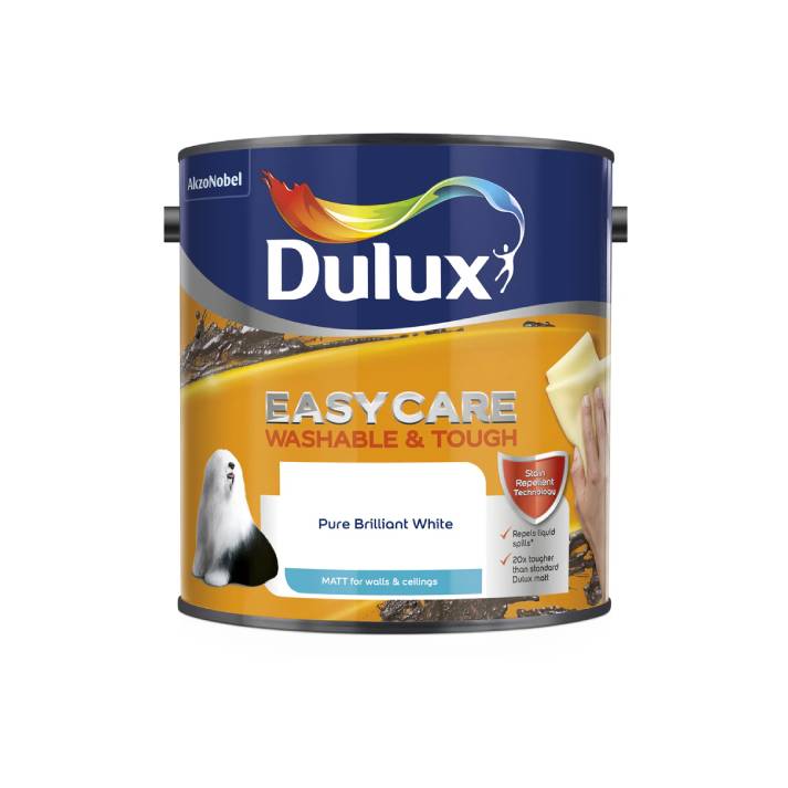 The Dulux Easycare Washable and Tough Emulsion Paint uses unique stain repellent technology to repel liquid spills, making them easier to wash away. It is 20x tougher than standard Dulux matt so you can remove stubborn marks without damaging the paint on your wall, keeping your home looking great for longer. Pure Brilliant White shines with timeless charm, giving your space a bright and flawless look that's perfect for any decor style or can be left blank for a modern finish.