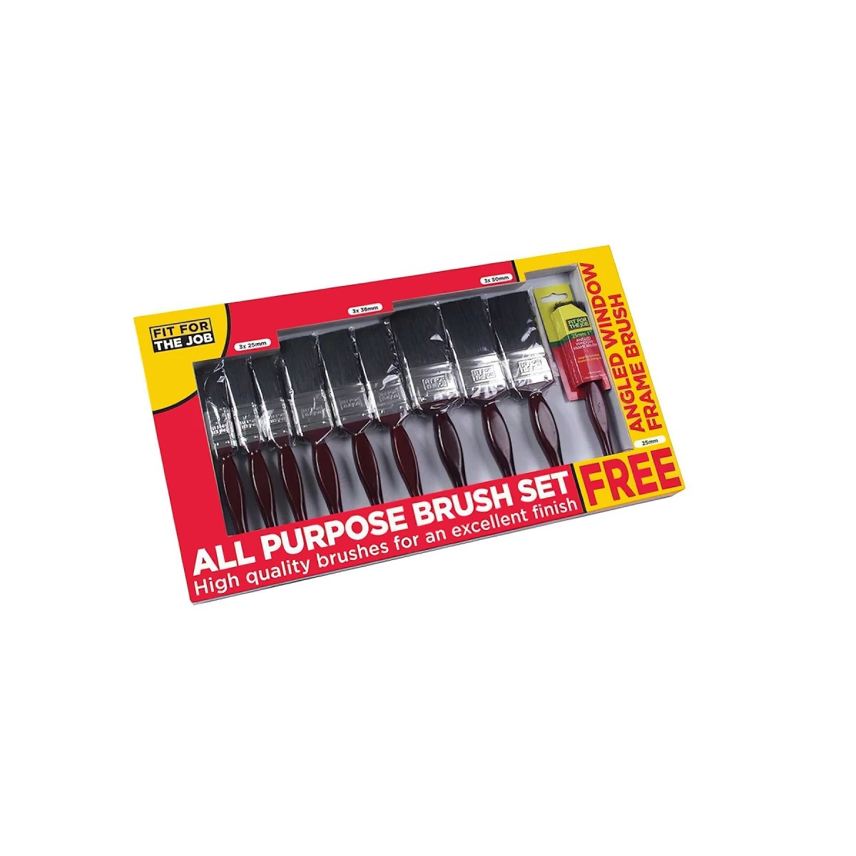 The Fit for the Job All-Purpose Frame and Paint Brush Set is a comprehensive, high-quality brush set designed for DIY projects, home renovations, and professional decorating. Featuring a range of durable synthetic bristle brushes, this set provides smooth paint application, excellent coverage, and a streak-free finish. Whether you're cutting in, painting walls, ceilings, or furniture, these brushes offer precision and efficiency for all types of paints, stains, and varnishes. The ergonomic handles ensure comfort during extended use, while the durable ferrules keep the bristles securely in place.
