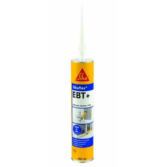 Sika Sikaflex Ebt+ Adhesive, Sealant And Filler Is A Multipurpose, One Part, Permanently Elastic, Polyurethane Adhesive And Sealant. Sika Ebt+ Bonds To All Common Building Materials With Excellent Grab And Gap Filling Properties Making It Ideal For Use In A Wide Rand Of Building A Maintenance Situations. This Makes Sikaflex Ebt+ Suitable For Many Different Uses Including But Not Limited To The Bonding Or Fixing Of Cabinets, Shower Trays, Mirrors Or Ceramics. The Bonding And Sealing Of Flashings, Roof Tiles, Gutters, Architrave, Skirting, Panelling, Mouldings, And Acoustic Tiles. The Filling And Sealing Of Internal And External Cracks And Gaps. The Forming Of Gaskets In Ducting And Sealing Between Components, And Much More. Sikaflex Ebt+ Also Benefits From Being Non-Corrosive, Having A Fast Curing Rate, And Being Able To Bond To Concrete, Brick, Mortar, Wood, Metals, Glass, Resins And Plastics.