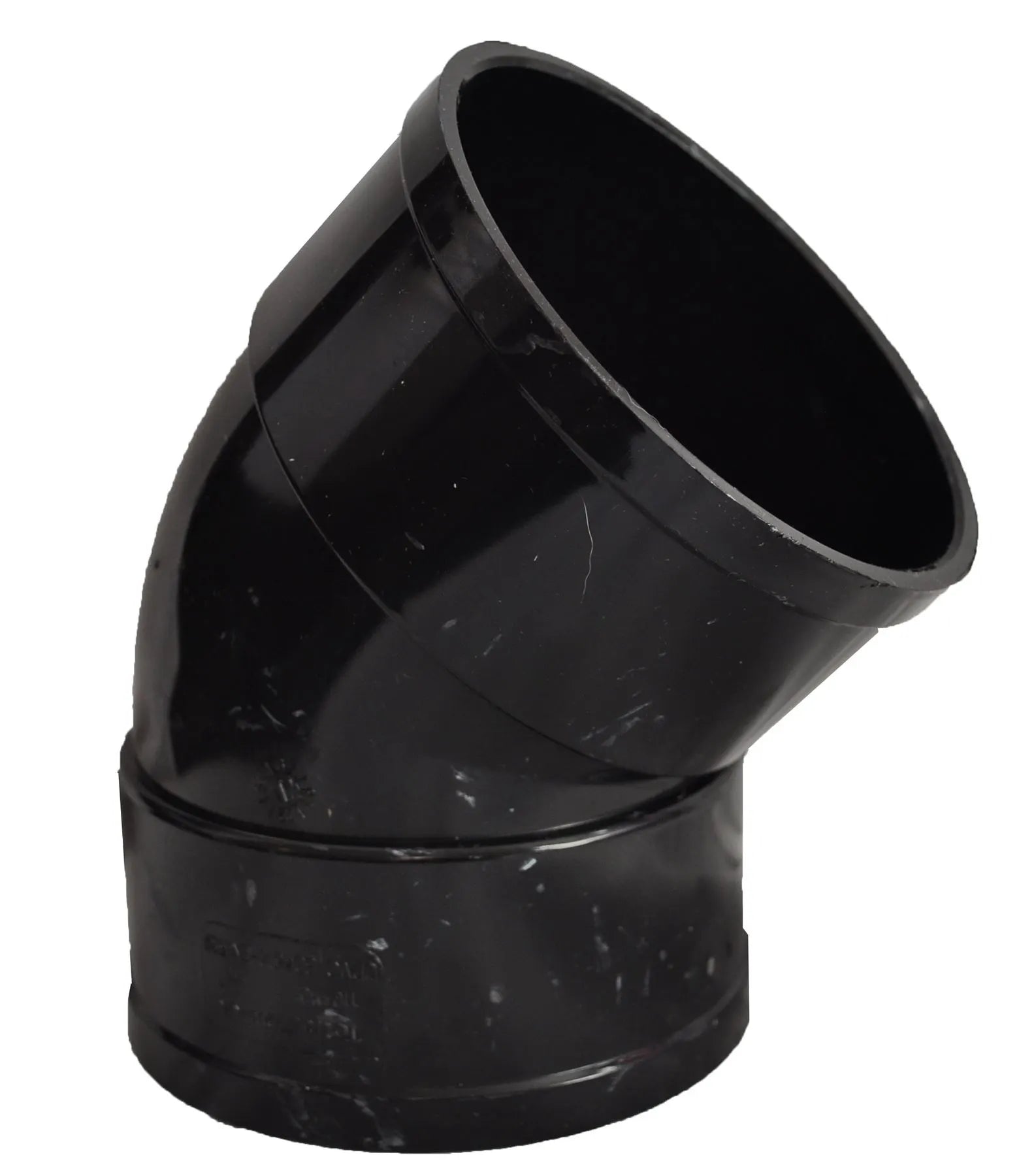 110mm Black UPVC Solvent Weld 45 degree Bend with Double Socket - for use with solvent weld waste/drainage systems.